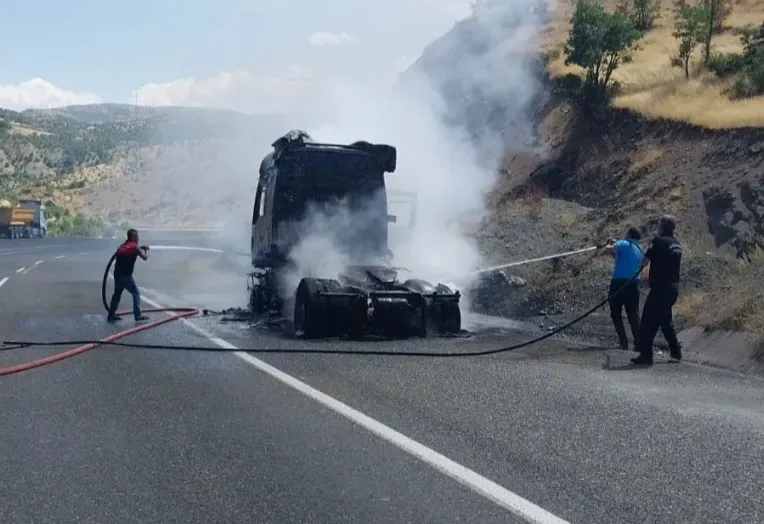 Edinilen bilgiye göre, Bingöl-Diyarbakır karayolunda dorsesiz halde seyir halinde olan tırın kupasından bir anda dumanlar çıkmaya başladı. Sürücü sağa çekerek araçtan aşağı indi. Sürücünün inmesinin ardından bir anda alev topuna dönen tır, yanarak kullanılamaz hale geldi. Haber verilmesi üzerine olay yerine itfaiye ve jandarma ekipleri sevk edildi. İtfaiye ekiplerinin müdahalesi ile yangın söndürüldü.