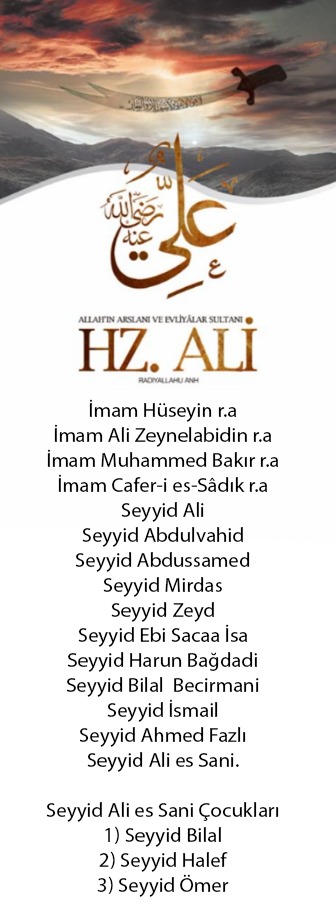 Seyyid Bilal → Seyyid İsmail → Seyyid Şeyh Ahmed Fazlı (halk arasında “Şeyh Ahmed”) → Şeyh Seyyid Ali es Sânî.