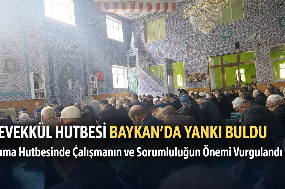 BAYKAN – 27 Mart 2026 Cuma günü, Siirt’in Baykan ilçesinde bulunan Merkez Camii’nde okunan hutbede, İslam’ın temel kavramlarından biri olan “tevekkül” konusu ele alındı. Türkiye genelinde eş zamanlı olarak camilerde okunan hutbe, Baykan’da da yoğun katılımla dinlendi.