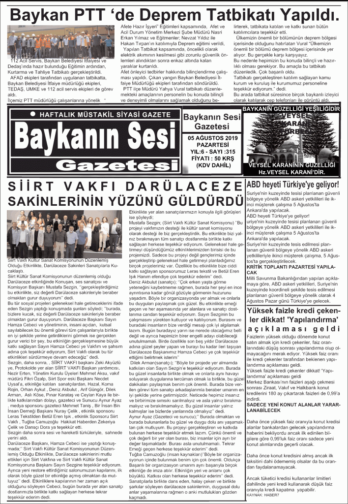 Mustafa Sezgin; (Siirt Vakfı Kültür Sanat Komisyonu) ’’Bu projeyi vakfımızın desteği ile kültür sanat komisyonu olarak desteği ile biz gerçekleştirdik. Bu etkinlikte bizi yalnız bırakmayan tüm sanatçı dostlarımla birlikte katkı sağlayan herkese teşekkür ediyorum. Geleneksel hale getirmeyi düşündüğümüz etkinliklerimizden birisisi de bu projemizdi. Sadece bu projeyi değil gençlerimiz içinde gerçekleştirip geleneksel hale getirmeyi planladığımız birçok projelerimiz var. Özellikle bu etkinlikte bize ciddi katkı sağlayan sponsorumuz Leras tekstil ve Betül Eren Işık Hanım efendiye çok teşekkür ederim’’ dedi.