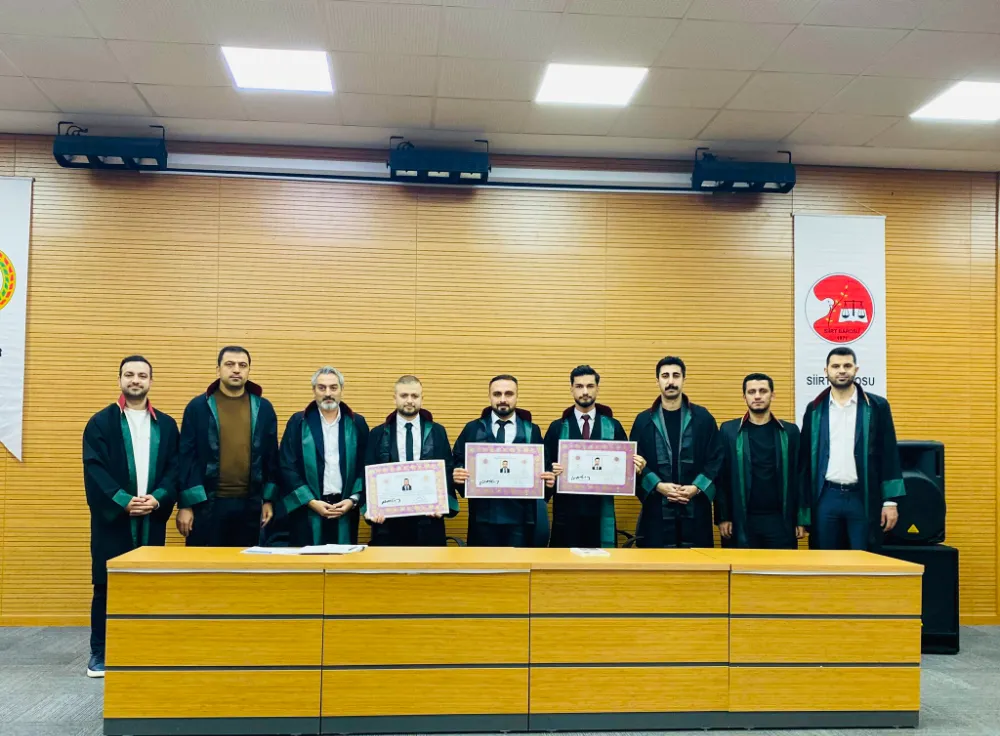 Siirt Barosu tarafından yapılan değerlendirmede, staj dönemini tamamlayarak ruhsat alan genç avukatlar tebrik edilirken, kendilerine başarılı, onurlu ve adaletle yoğrulmuş bir meslek hayatı dileğinde bulunuldu.