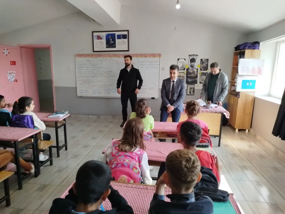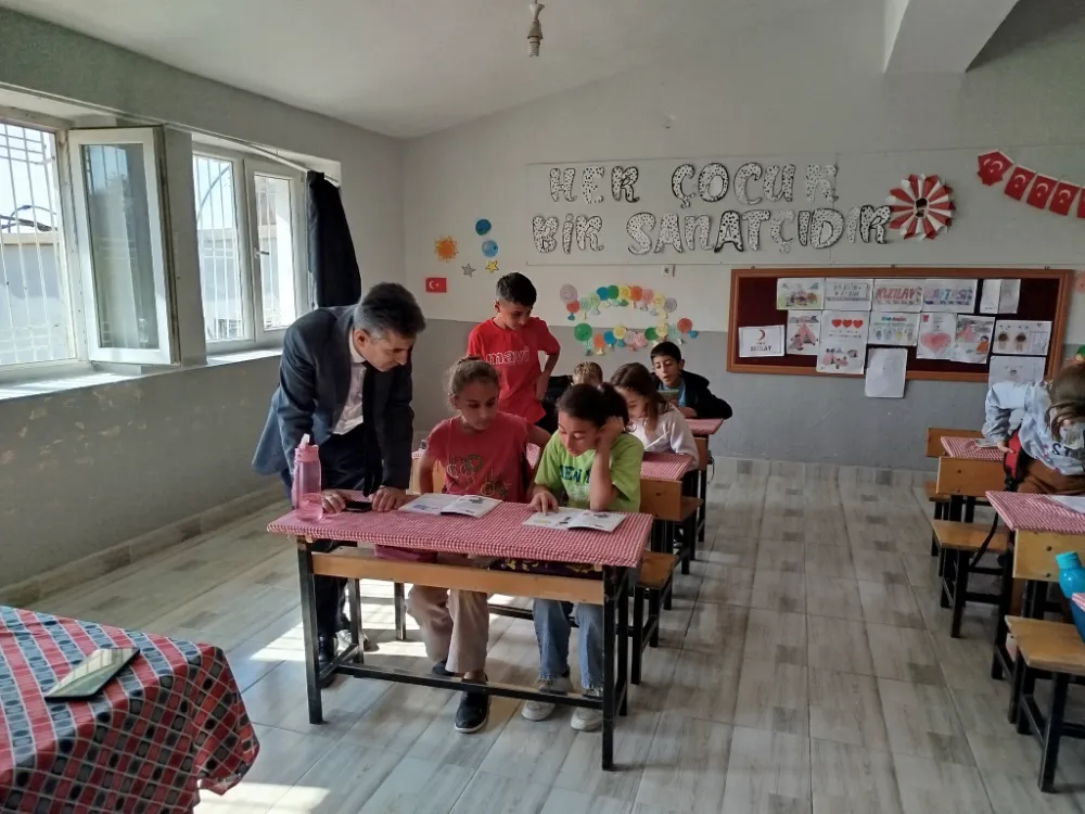 Ziyarette okul yönetimi ve öğretmenlerle bir araya gelen Müdür Gülmez, öğrencilerin ders durumları hakkında bilgi aldı ve sınıfları gezerek öğrencilerle yakından ilgilendi.