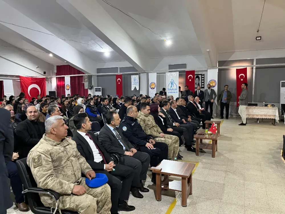 Program, Veysel Karani Çok Programlı Anadolu Lisesi konferans salonunda gerçekleştirildi. Etkinliğe Baykan Kaymakamı Fatih Özcan, Baykan Asliye Ceza Hakimi Hilal Emre, İlçe Jandarma Bölük Komutanı Üsteğmen Çağatay Acar, İlçe Emniyet Amiri Murat Eker, İlçe Milli Eğitim Müdürü Vahap Gülmez, siyasi parti ve sivil toplum kuruluşlarının temsilcileri, Baykan Esnaf ve Sanatkârlar Odası Başkanı Osman Gülümser, www.siirthaberci.com� Yönetim Kurulu Başkanı Şakir Erol, kamu kurum ve kuruluşlarının amir ve müdürleri, Milli Eğitim Şube Müdürleri, öğretmenler, öğrenciler ve çok sayıda vatandaş katıldı.