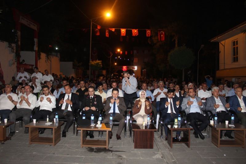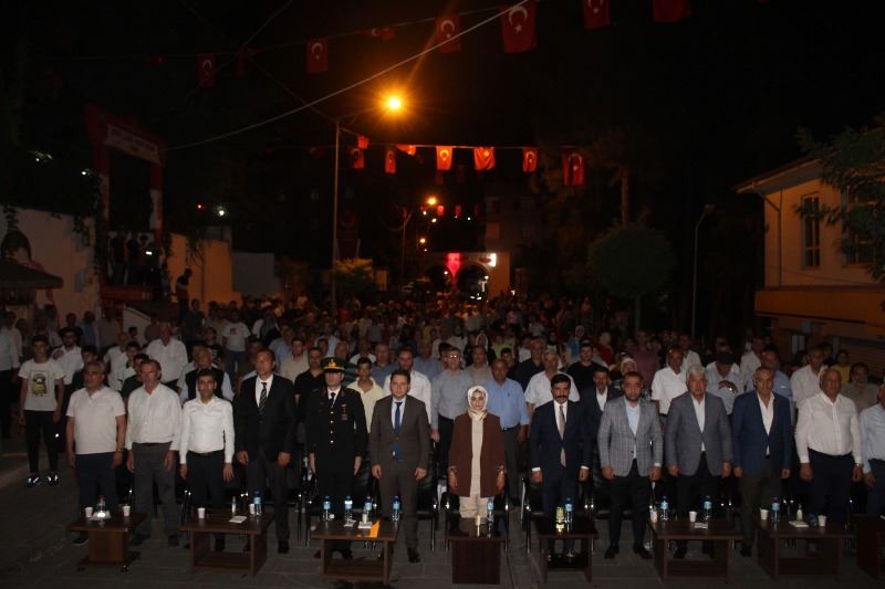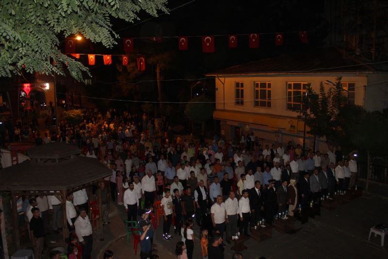 21,45 ‘te Saygı Duruşu ve İstiklal Marşının okunmasıyla devam eden programda İlçe Müftü vekili Rauf Geylani’nin Şehit ve gaziler için dua okuması ve merkez Camii İmamı tarafından Kur'an-ı Kerim Tilaveti okundu.