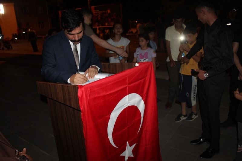 Kaymakam/Belediye Başkanvekili Bağlı, 15 Temmuz Demokrasi ve Milli Birlik Günü Anı Defterini imzalaması sonrası yaptığı konuşmada, 15 Temmuz 2016 günü yaşanan darbe girişimine milletin silahlarının hain örgüt tarafından gasp edildiğini dile getirerek şöyle konuştu: 'Ancak bu millet inandığı, güvendiği liderinin işaretiyle doldurduğu meydanlarda bu hain terör çetesine ve sahiplerine söyleyecek sözü, vereceği ders vardı. Hain mankurtlar çetesinin başlattığı hain saldırı Allah'ın izniyle gün doğmadan hezimete uğratıldı. Millet bir demokrasi zaferine imza atmıştır.