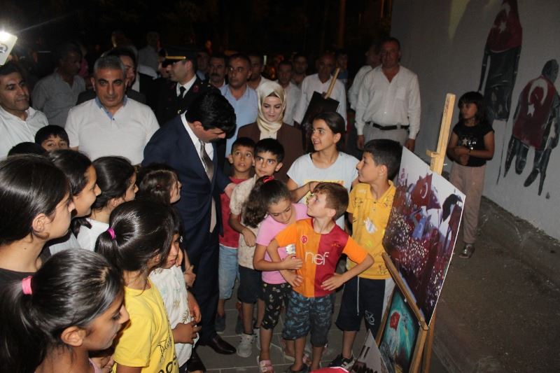 Kaymakam/Belediye Başkanvekili Emin Bağlı ve katılımcılara 15 Temmuz konulu Resim sergisinin gezmesi ile başladı.