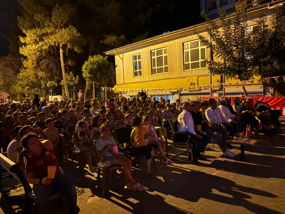 Yüzlerce kişinin katıldığı etkinlikte çocuklar için patlamış mısır, kek ve meyve suyu ikramı eşliğinde sinema keyfi sunuldu. Yaz akşamının serinliğinde açık havada kurulan dev perdede nostaljik ve eğlenceli film gösterimi, izleyicilere unutulmaz anlar yaşattı.