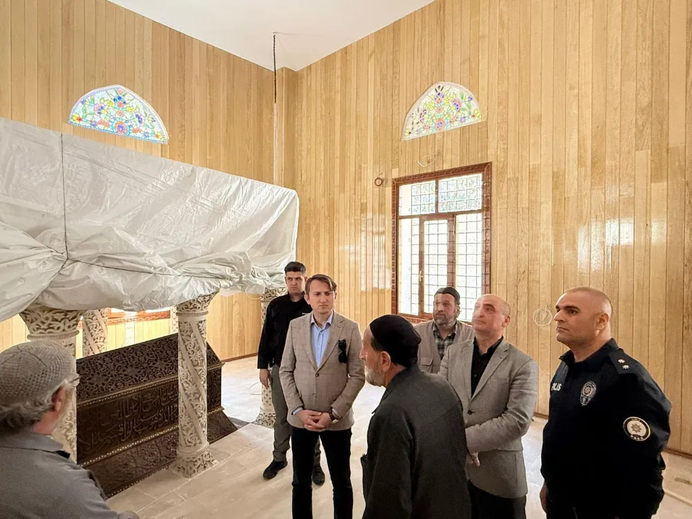 İncelemelerin ardından türbeyi ziyarete gelen vatandaşlarla da selamlaşan Kaymakam Fatih Özcan, bölge halkıyla sohbet ederek talep ve önerilerini dinledi.