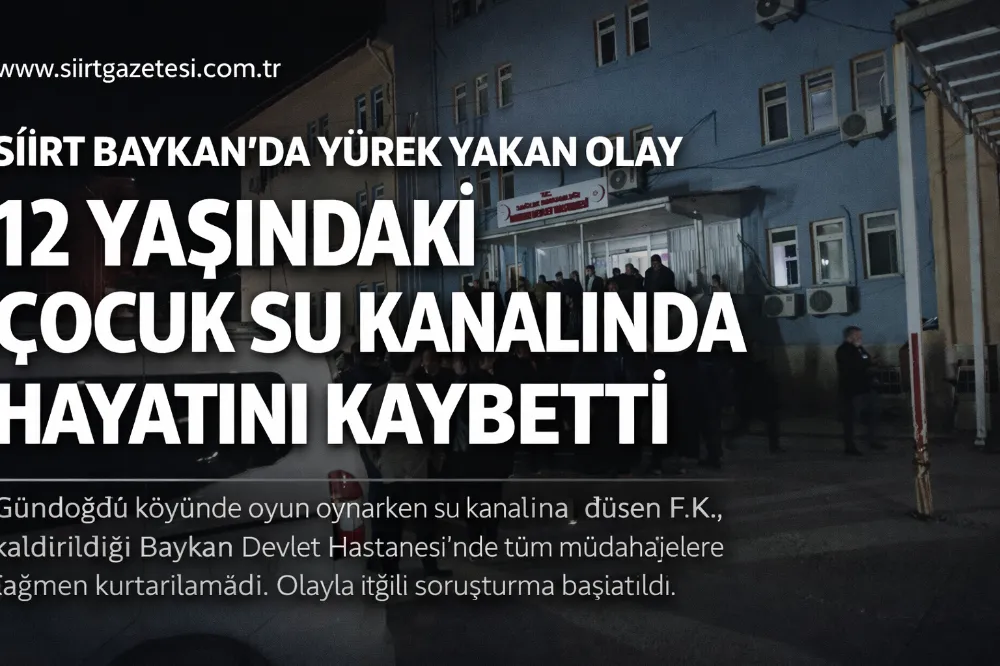 Siirt Baykan’da Yürek Yakan Olay: 12 Yaşındaki Çocuk Su Kanalında Hayatını Kaybetti