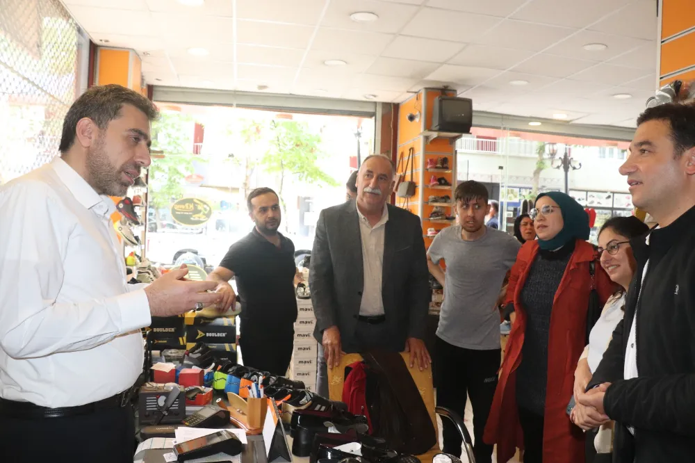 Gaffar Okkan Caddesini gezerek, esnafları ziyaret eden Belediye Eş Başkanları Alağaş ve Kaysi, esnafa hayırlı ve bereketli kazançlar diledi.