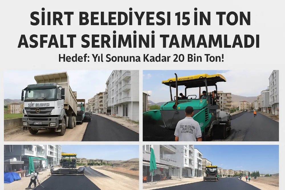> “Siirt Belediyesi, 2025 yılı asfalt sezonu kapsamında şimdiye kadar 15 bin ton asfalt serimini tamamladı. Mahalle buluşmaları ve vatandaş talepleri doğrultusunda çalışmalarımız kararlılıkla devam ediyor.”
