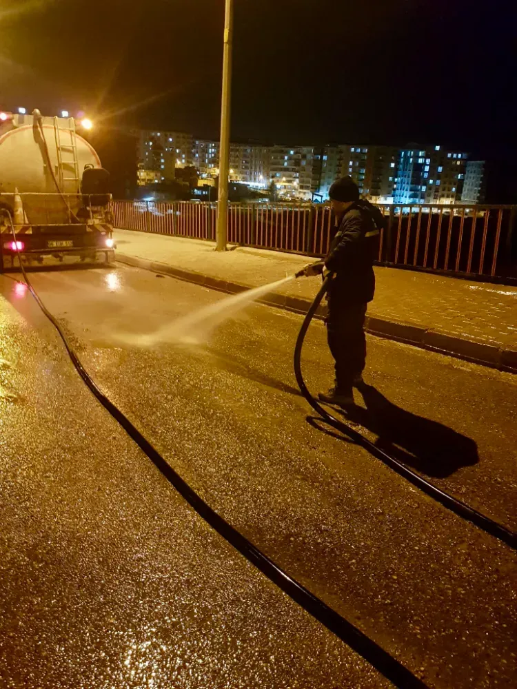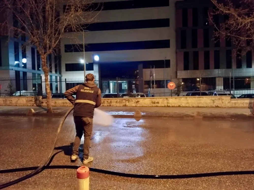 Siirt Belediyesi Temizlik İşleri Müdürlüğü ekipleri, kent genelinde temizlik ve hijyen standartlarını artırmak amacıyla gece saatlerinde kapsamlı yıkama ve dezenfekte çalışması gerçekleştirdi.