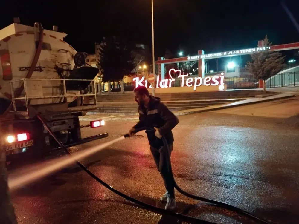 Siirt Belediyesi Temizlik İşleri Müdürlüğü ekipleri, gece saatlerinde sahaya çıkarak kent genelinde geniş kapsamlı temizlik çalışması gerçekleştirdi. Özellikle vatandaşların yoğun olarak kullandığı alanlarda yapılan yıkama ve dezenfekte çalışmalarıyla şehir genelinde hijyen standartlarının yükseltilmesi hedeflendi.