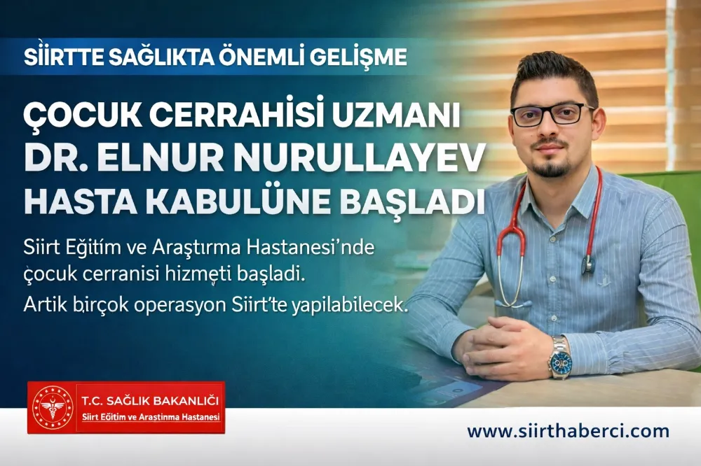 Siirt’te sağlık alanında önemli bir gelişme daha yaşandı. Çocuk Cerrahisi Uzmanı Dr. Elnur Nurullayev, Siirt Eğitim ve Araştırma Hastanesi’nde hasta kabulüne başladı.