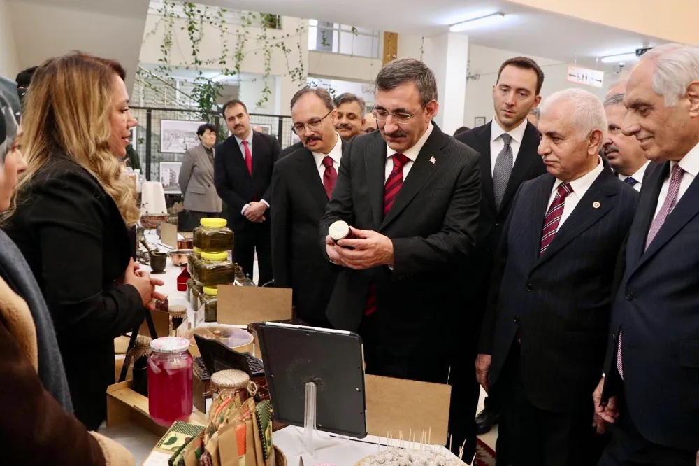 Siirt Ekonomi Zirvesi’nin açılış programı kapsamında kente gelen Cumhurbaşkanı Yardımcsı Cevdet Yılmaz, Siirt Üniversitesi bünyesinde kurulan ve Siirt’in yöresel ile marka değerine sahip ürünlerinin sergilendiği alanı ziyaret etti.