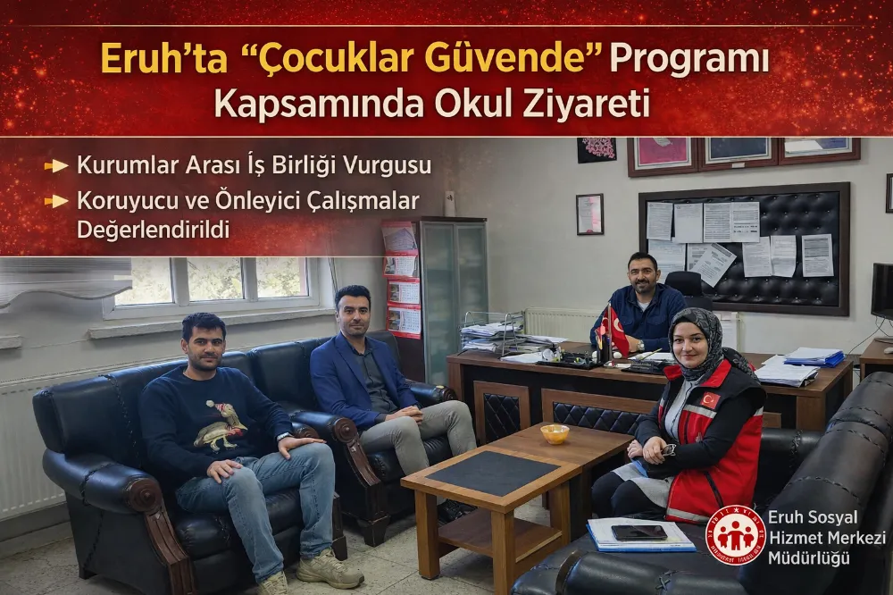 Eruh Sosyal Hizmet Merkezi Müdürlüğü tarafından, çocukların korunmasına yönelik yürütülen çalışmalar kapsamında Eruh 75. Yıl Milli Eğitim Vakfı Ortaokulu’na ziyaret gerçekleştirildi.