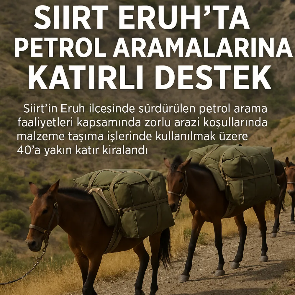 Petrol arama çalışmalarının sürdüğü Eruh kırsalında, araçların ilerleyemediği bölgelerde katırlar lojistik desteğin merkezinde yer alıyor. Yetkililer, bu uygulamanın geçici bir çözüm olarak değerlendirildiğini, sürecin yerel olanaklarla çevreye zarar vermeden sürdürüldüğünü ifade etti.