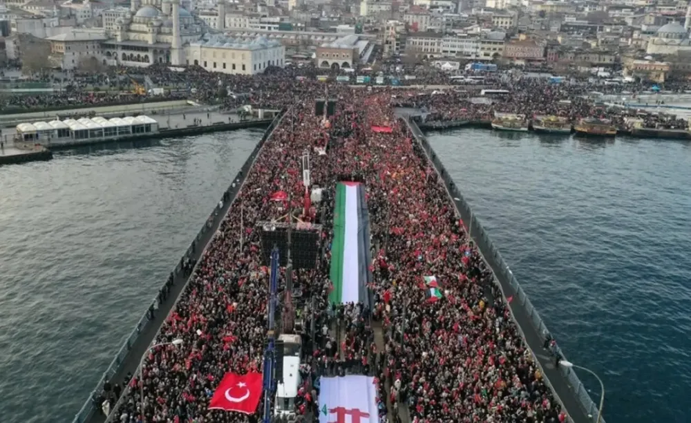 Yeni yılın ilk sabahında İstanbul, Filistin halkı için tarihi bir buluşmaya sahne oldu. Yüz binlerce vatandaş Galata Köprüsü’nde bir araya gelerek Filistin’de yaşanan insanlık dramına karşı güçlü bir dayanışma mesajı verdi.