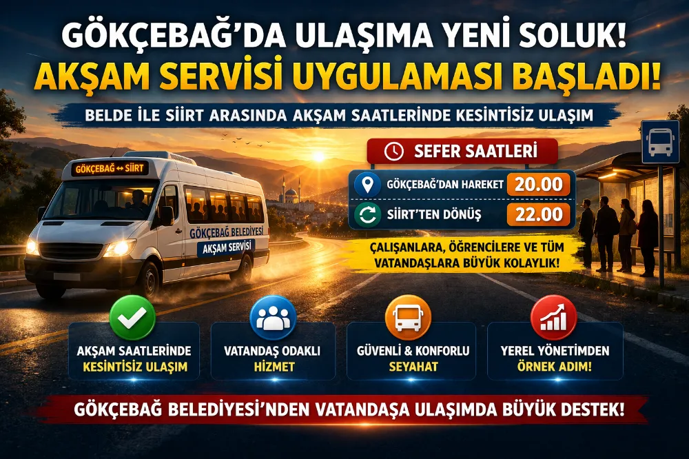 Servis hizmeti kapsamında; Gökçebağ’dan hareket: 20.00 Siirt’ten dönüş: 22.00 Bu saat aralığı sayesinde vatandaşlar şehir merkezindeki işlerini rahatlıkla halledip beldeye güvenli şekilde dönebilecek.