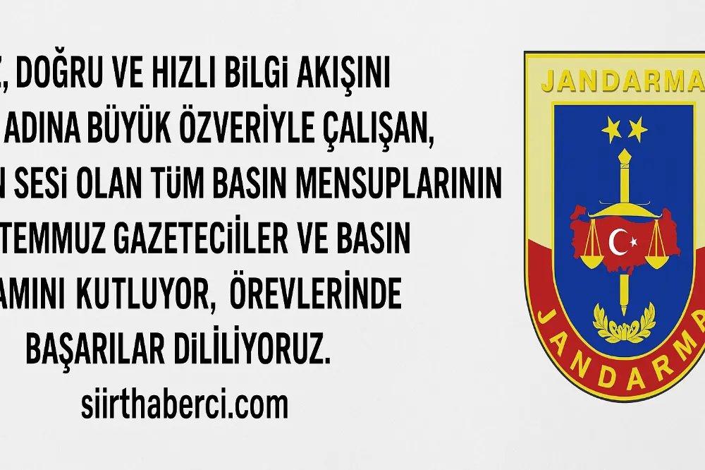 Gonderilen Mesaj da Yapılan açıklamada, basın mensuplarının halkla devlet arasında köprü görevi gördüğü, tarafsız ve ilkeli haberciliğin demokrasinin temel taşlarından biri olduğu vurgulandı. Siirt Jandarması, basın emekçilerinin özverili çalışmalarına duyduğu minnettarlığı şu sözlerle dile getirdi: