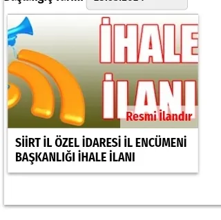 Siirt İl Özel İdaresi hizmet binası giriş katında bulunan çay ocağının tespit edilen Yıllık 27.000,00.TL muhammen kira bedeli üzerinden 2886 sayılı Devlet İhale Kanunun 45.maddesi gereğince açık teklif artırma usulü ile üç (3) yıl süre ile kiralanması işi için ihaleye çıkarılmıştır.