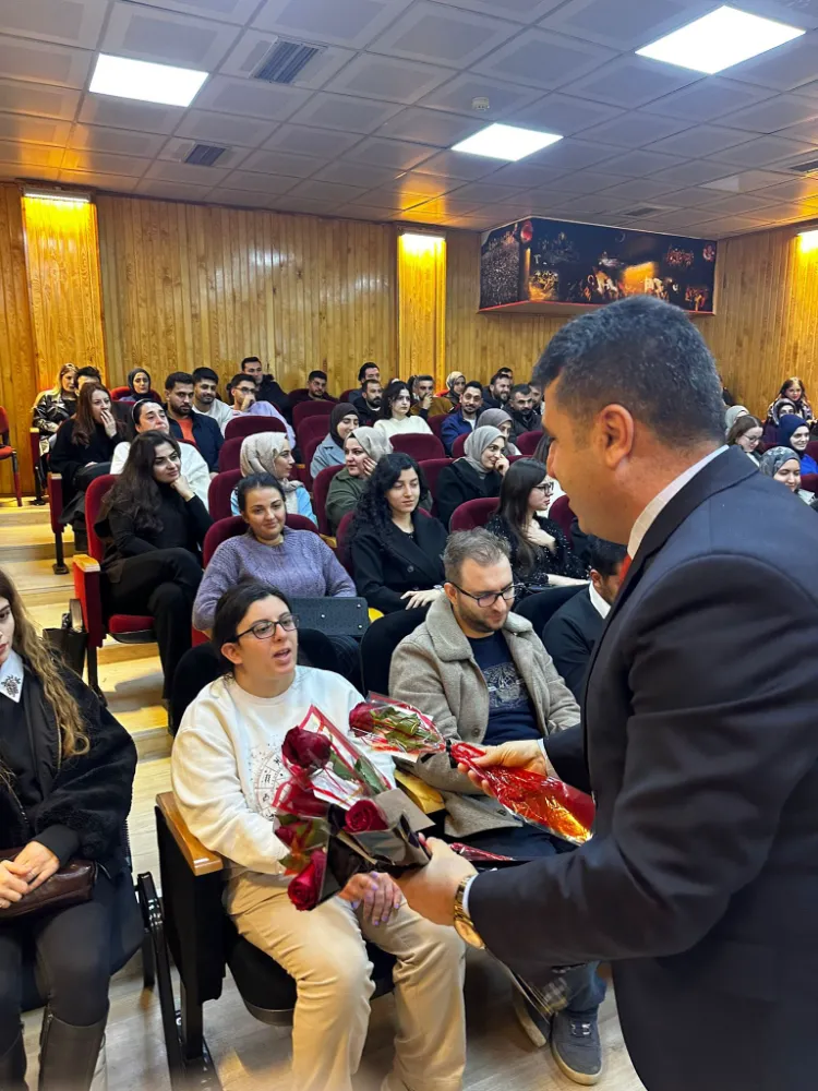 Aday öğretmenlere hitaben yapılan konuşmanın ardından İlçe Milli Eğitim Müdürü Faysel Polat tarafından öğretmenlere gül takdim edildi.
