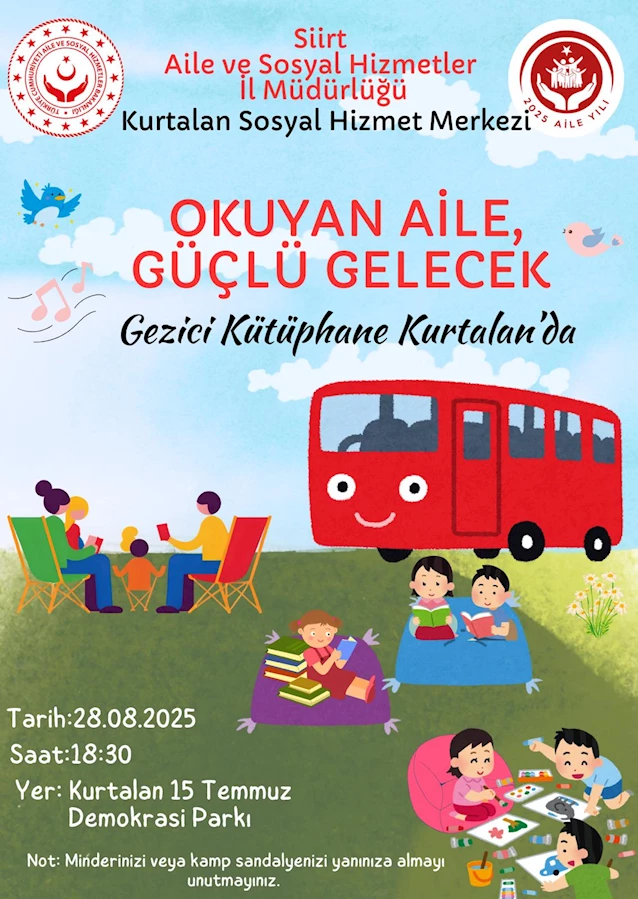 Aile ve Sosyal Hizmetler Bakanlığı koordinasyonunda, Siirt Aile ve Sosyal Hizmetler İl Müdürlüğü ve Kurtalan Sosyal Hizmet Merkezi Müdürlüğü tarafından 28 Ağustos 2025 Perşembe günü Kurtalan 15 Temmuz Demokrasi Parkı’nda kapsamlı bir etkinlik düzenlenecek.