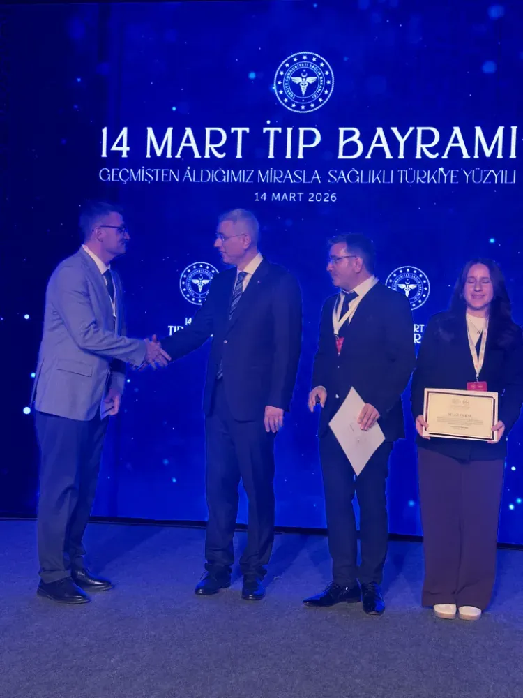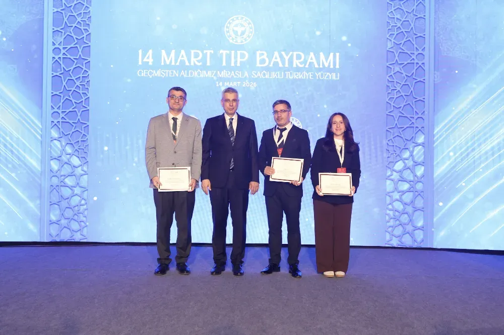 14 Mart Tıp Bayramı dolayısıyla düzenlenen programda sağlık çalışanlarının pandemi başta olmak üzere zorlu süreçlerde gösterdiği fedakârlık da hatırlatıldı.