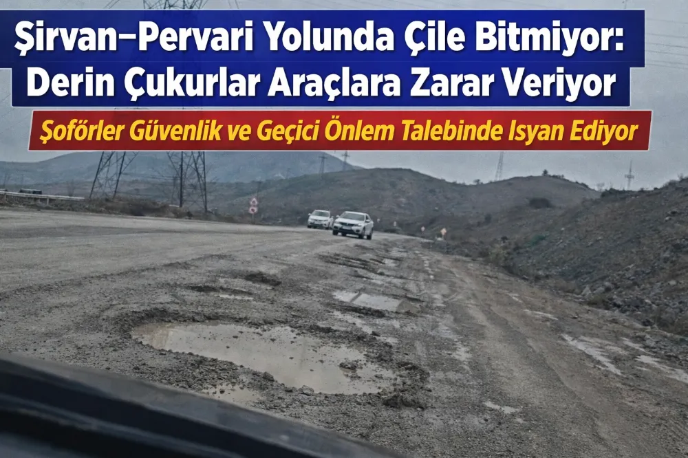 Siirt’te Şirvan–Pervari karayolunda devam eden yol yapım ve bakım çalışmaları, oluşan derin çukurlar nedeniyle sürücüler için adeta çileye dönüştü. Yolun bazı bölümlerinde açılan ve yeterli şekilde işaretlenmediği öne sürülen çukurlar yüzünden araçlarda maddi hasar meydana geldiği belirtildi.
