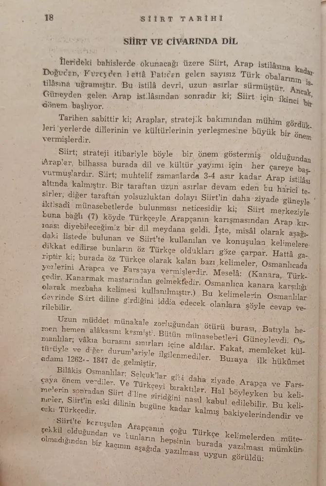 1946 yılında İstanbul Çeltut Matbaası’nda basılan ve Siirt Müftüsü Ömer Atalay tarafından yazılan “Siirt Tarihi” adlı eser, dönemin devlet ideolojisini yansıtan, dil ve kimlik konularına dair dikkat çeken görüşler içermektedir.