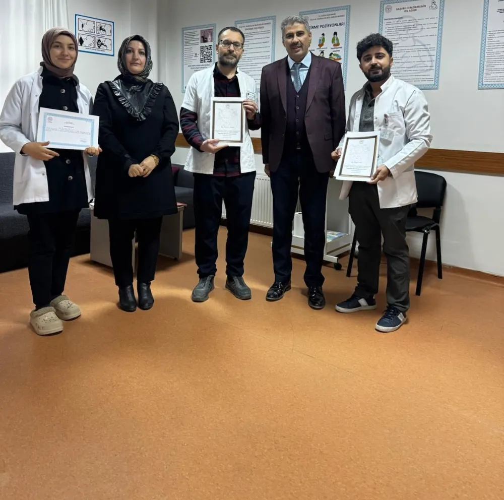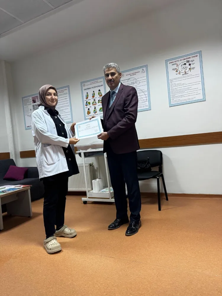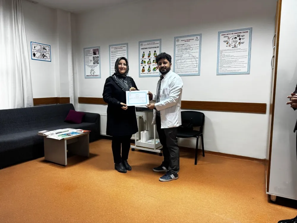 Programa Halk Sağlığı Birim Sorumlusu İbrahim Teğin ve Bebek Dostu İl Koordinatörü Hemşire Halime Batur katıldı. Ziyarette, unvan sürecinin tamamlanması dolayısıyla personele belgeler takdim edilerek teşekkür edildi ve süreç fotoğraflarla belgeledi.