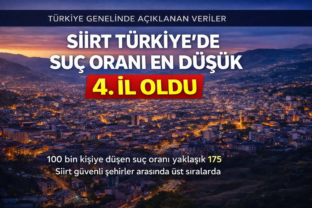Türkiye genelinde 100 bin kişiye düşen suç oranlarına ilişkin açıklanan veriler, Siirt’in güvenlik ve kamu düzeni açısından Türkiye’nin en dikkat çeken illerinden biri olduğunu ortaya koydu.