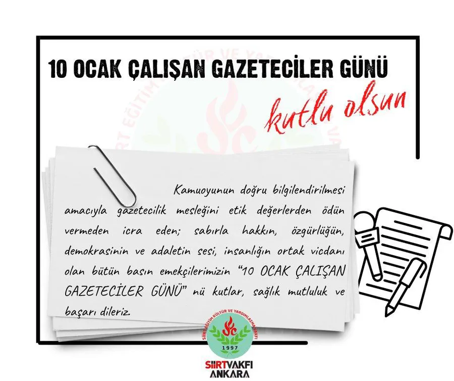 Siirt Vakfı Ankara Şubesi, 10 Ocak Çalışan Gazeteciler Günü dolayısıyla anlamlı ve güçlü bir mesaj yayımladı.