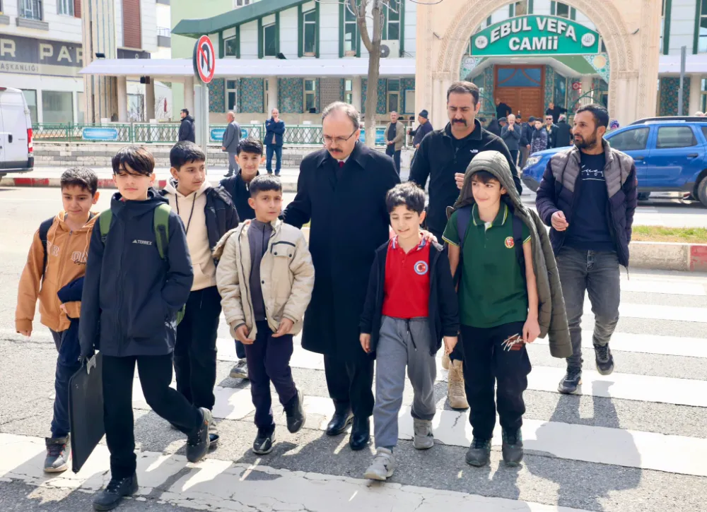 Cami çıkışında çocuklarla bir araya gelen Vali Kızılkaya, gençlerle sohbet ederek onların okul hayatı ve gelecek hedefleri hakkında sorular sordu.