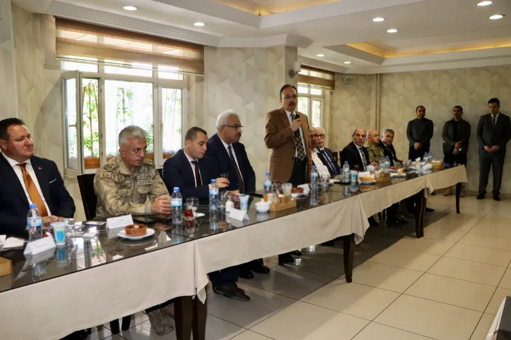 Siirt Valisi / Belediye Başkanvekili Dr. Kemal Kızılkaya, Güvenlik Korucularıyla yemekte buluştu.Siirt Valisi ve Belediye Başkanvekili Dr. Kemal Kızılkaya ; Siirt’in huzur ve güvenliği için büyük bir özveriyle görev yapan kahraman Güvenlik Korucularıyla, Siirt Polis Evi’nde düzenlenen yemekte bir araya geldi. Vali Kızılkaya, jandarma ve emniyet birimleriyle omuz omuza çalışan Güvenlik Korucularına yürüttükleri özverili görevleri için teşekkür ederek, birlik ve beraberliğin teminatı olan güvenlik güçlerinin her zaman yanında olduklarını vurguladı. Birlik, beraberlik ve kardeşlik duygularının pekiştirildiği bu anlamlı buluşmada emeği geçen tüm kişi ve kuruluşlara gönülden teşekkür edildi. Programa; Vali Yardımcısı Birkan tatlısöz, İl Jandarma Komutanı Tuğgeneral Uğur Özmen, İl Emniyet Müdürü Necmettin Öztürk, 3. Komando Tugay Komutan V. Kurmay Albay Murat İlhan, İller İdaresi Genel Müdürlüğü Güvenlik Korucuları Daire Başkanı Eyüp Özdemir, Ak Parti İl Başkanı Av. Bahri Caner Özturan, Anadolu Güvenlik Korucuları ve Şehit Aileleri Konfederasyon Başkanı Orhan Kandemir, 15Temmuz Demokrasi Şehitleri Gazileri ve Terör Mağdurları Derneği Genel Başkanı Abbas Gündüz, Siirt Federasyon Başkanı Baki Olgaç, kurum müdürleri, güvenlik korucuları, şehit yakınları ve gaziler katıldı.