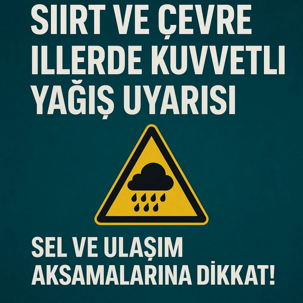Meteoroloji Genel Müdürlüğü, Siirt, Diyarbakır, Batman ve Şırnak illerinde etkili olması beklenen kuvvetli sağanak yağışlara karşı vatandaşları uyardı. Yapılan açıklamada, yağışların ani sel, su baskını ve ulaşımda aksamalara yol açabileceği belirtildi.