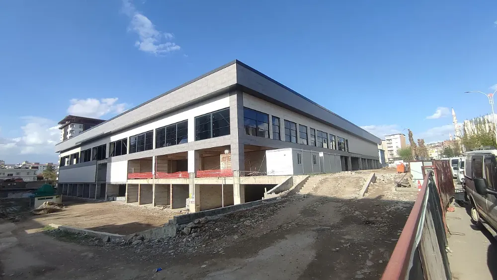 Siirt'in sosyal ve ekonomik hayatına katkı sağlayacak büyük alışveriş kompleksinin inşaatı hızla ilerliyor.
