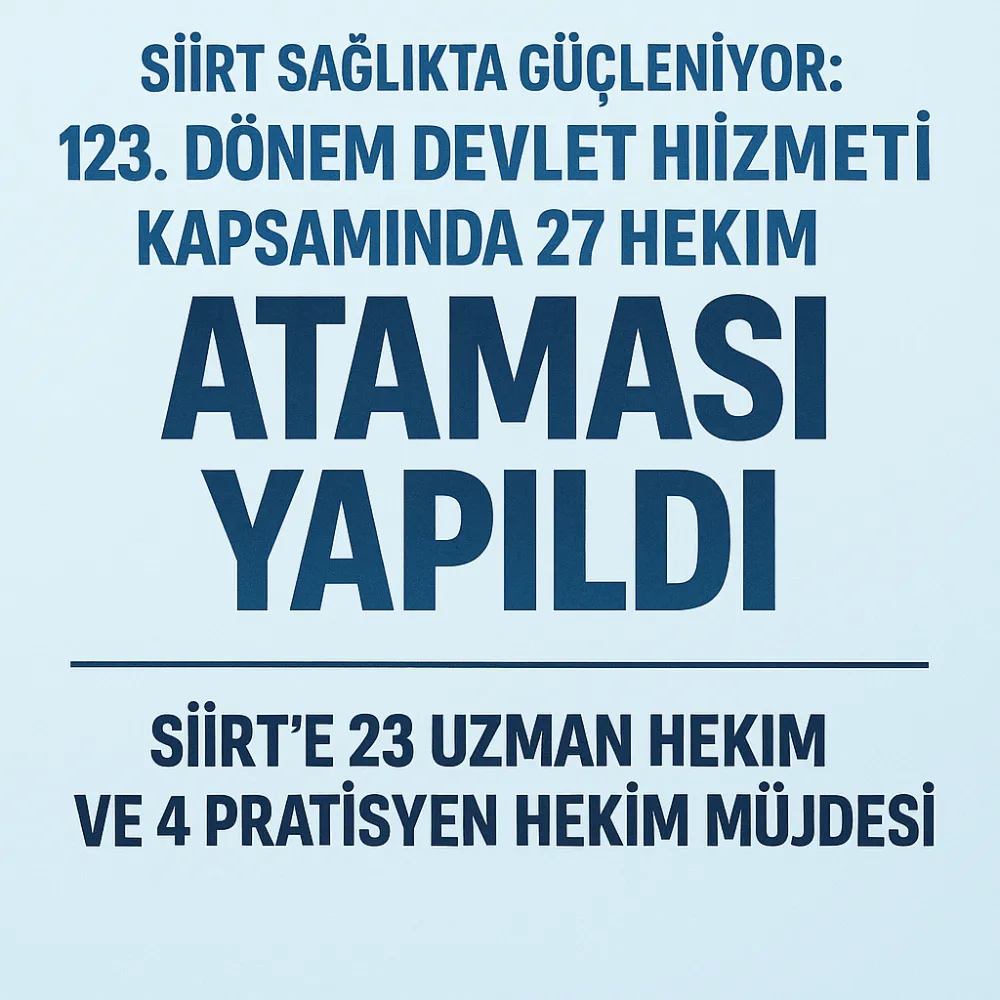 Yeni atamalarla birlikte Siirt'te sağlık altyapısının güçlendirilmesi, hekim ihtiyacının önemli ölçüde karşılanması ve vatandaşlara daha etkin hizmet sunulması bekleniyor.