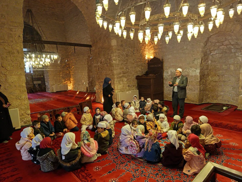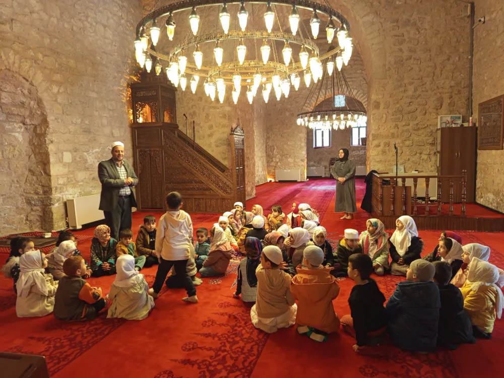 Siirt İl Müftülüğü'ne bağlı 4-6 yaş Kur'an kursunun minik öğrencileri, öğretmenleriyle birlikte tarihi Ulu Camiyi ziyaret etti.