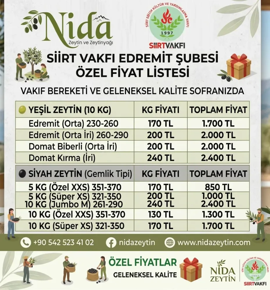 Siirt Vakfı Edremit Şube Başkanı Yaşar Uluderya’nın girişimleriyle, Siirtli hemşehrilere özel bir fiyat listesi hazırlanarak dayanışma örneği sergilendi.