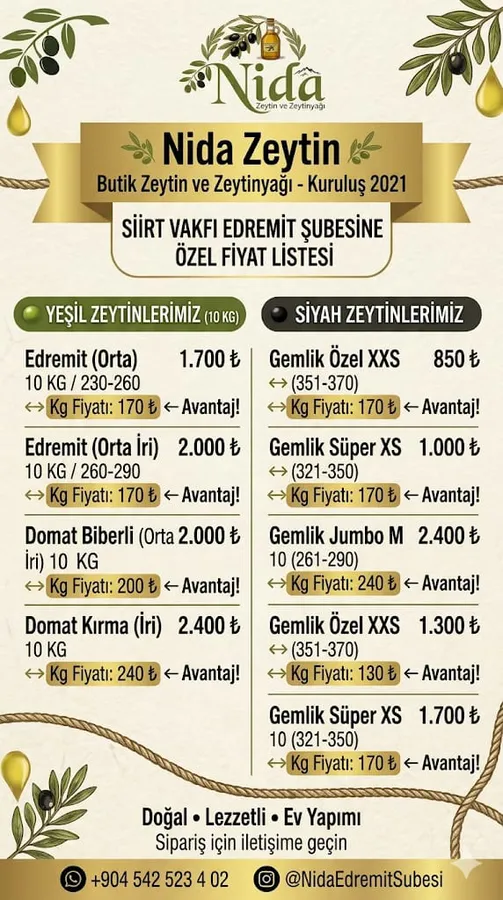 2021 yılında kurulan Nida Zeytin ve Zeytinyağı markasıyla faaliyet gösteren tesis, doğal ve kaliteli ürünleri doğrudan üreticiden tüketiciye ulaştırmayı hedefliyor.