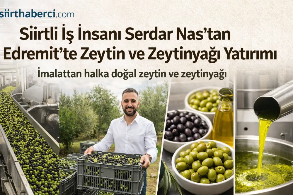 Siirtli iş insanı Serdar Nas, Balıkesir’in Edremit ilçesine bağlı Zeytinli Mahallesi’nde kurduğu zeytin ve zeytinyağı üretim tesisiyle hem bölge ekonomisine katkı sağlıyor hem de memleketinden gelen hemşehrileriyle güçlü bağlarını sürdürüyor.