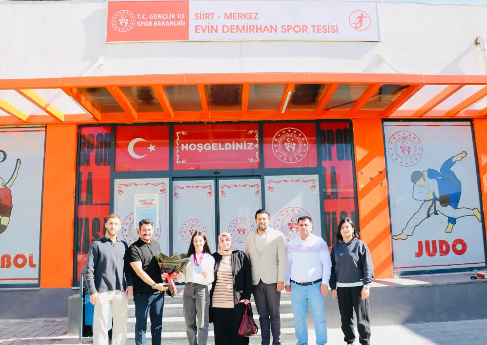 2025 Avrupa Güreş Şampiyonası’nda gümüş madalya kazanarak Avrupa ikincisi olan, aynı zamanda Dünya ve Avrupa şampiyonu unvanlarına sahip Siirtli Milli Sporcu Evin Demirhan Yavuz, annesi ve eşi ile birlikte Siirt Gençlik ve Spor İ
