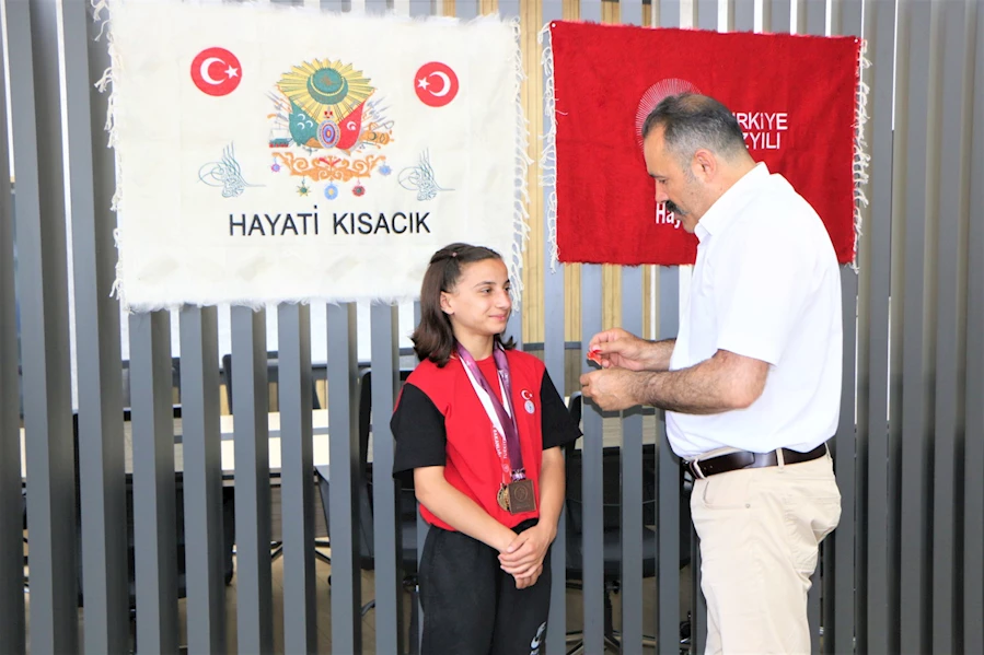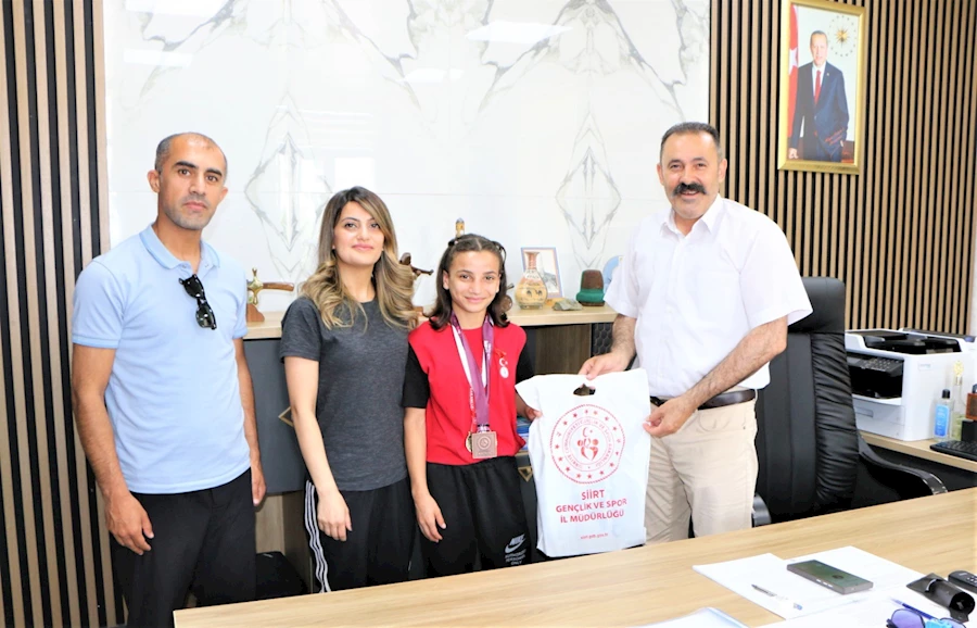 Siirt Gençlik ve Spor İl Müdürü Hayati Kısacık büyük başarıya imza atan sporcumuz şirin Aşkara’yı ve antrenörü Pınar Ünal’ı makamında ağırlayarak kendisini ve antrenörünü tebrik ederek altın ve hediyelerle ödüllendirdi.