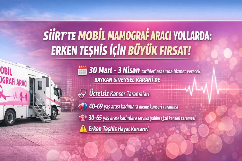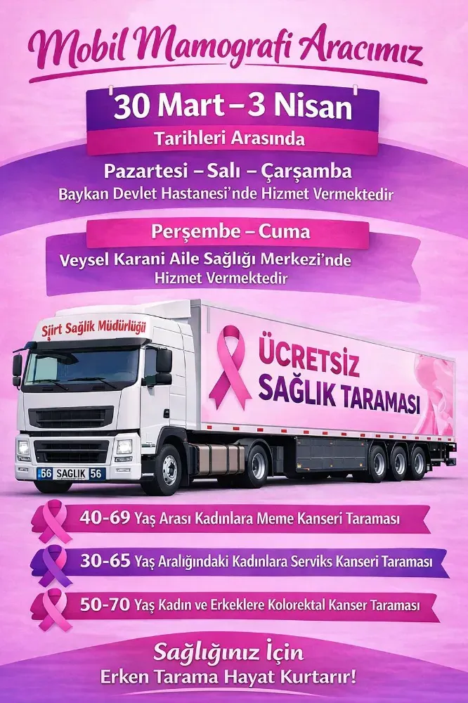 Siirt’te kanserle mücadelede erken teşhisin önemine dikkat çekmek amacıyla hizmet veren Mobil Mamografi Aracı, vatandaşlara yerinde sağlık hizmeti sunmaya devam ediyor.