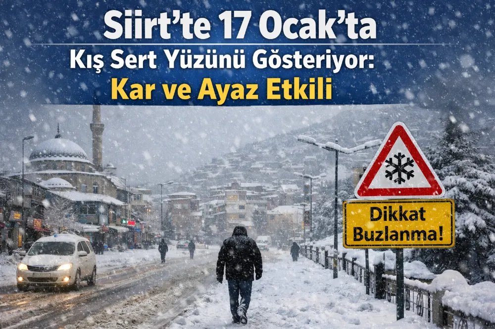 17 Ocak Cumartesi günü Siirt’te soğuk, kar yağışlı ve ayaz etkili olacak. Kış şartlarına karşı tedbirli olunması, hem can hem de mal güvenliği açısından büyük önem taşıyor.