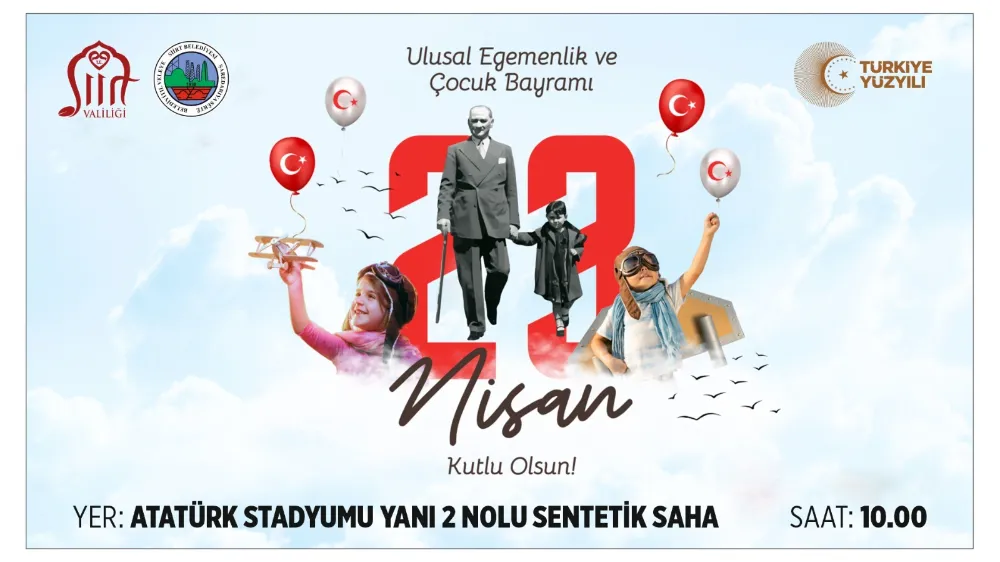 23 Nisan Ulusal Egemenlik ve Çocuk Bayramı’nın 105. yıldönümü, ilimizde düzenlenecek çeşitli etkinliklerle kutlanacak. Kutlamalar, 23 Nisan 2025 Çarşamba günü saat 08.00’de Atatürk Anıtı’na çelenk sunumuyla başlayacak. Saygı duruşu ve İstiklâl Marşı’nın okunmasının ardından şanlı bayrağımız göndere çekilecek. Törenler, daha sonra 2 Nolu Sentetik Çim Sahada devam edecek. Halkımızın ve öğrencilerin katılımıyla gerçekleşecek kutlama programı, günün anlam ve önemine dair konuşmalarla sürecek; öğrenciler şiirler okuyacak. Program kapsamında, öğrencilerin hazırladığı okul gösterileri ve geleneksel çocuk oyunları yarışmaları yer alacak. Halk Oyunları gösterileri, Taekwondo performansları, çuval yarışı, halat çekme ve yumurta taşıma yarışmaları ile renklenen etkinlikler, halk oyunları ekiplerinin “Biz Anadolu’yuz” temalı gösterisiyle devam edecek. İlk ve ortaöğretim kurumları arasında düzenlenen resim, şiir ve kompozisyon ve geleneksel çocuk oyunları yarışmalarında dereceye giren öğrencilere ödülleri takdim edilecek. Program, okulların geçit töreniyle sona erecek. 23 Nisan Ulusal Egemenlik ve Çocuk Bayramı Kutlu Olsun. SİİRT VALİLİĞİ