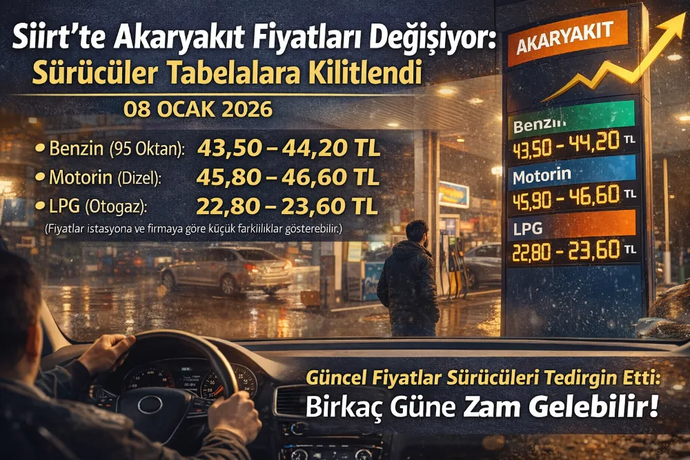 08 Ocak 2026 itibarıyla akaryakıt fiyatları, Siirt’te yalnızca sürücülerin değil; esnafın, çiftçinin ve nakliyecinin de en çok konuştuğu konular arasında yer alıyor. Önümüzdeki günlerde fiyatların hangi yönde seyredeceği ise merak konus