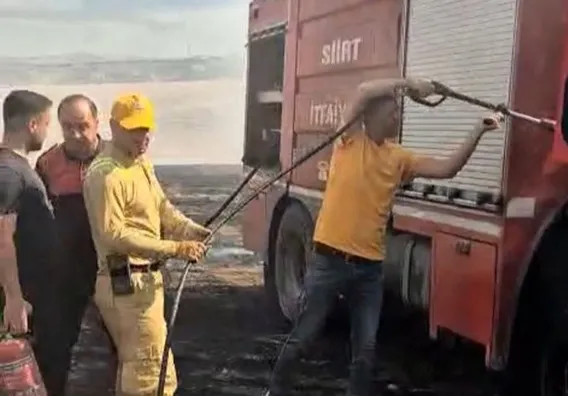 Siirt'te anız yangınına müdahale eden itfaiye aracı alevlere teslim oldu
