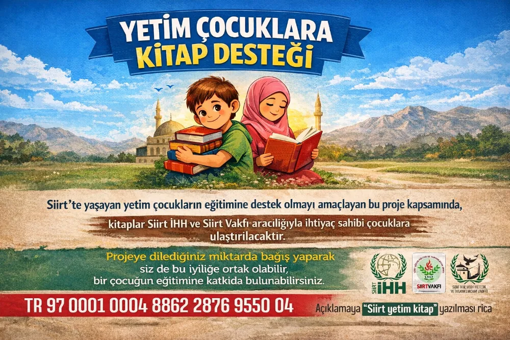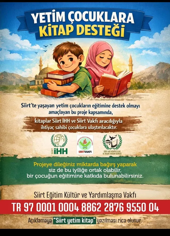 Bağış yapanların açıklama kısmına “Siirt yetim kitap” notunu düşmeleri istenirken, toplanan yardımların doğrudan yetim çocukların eğitimine yönlendirileceği bildirildi.
